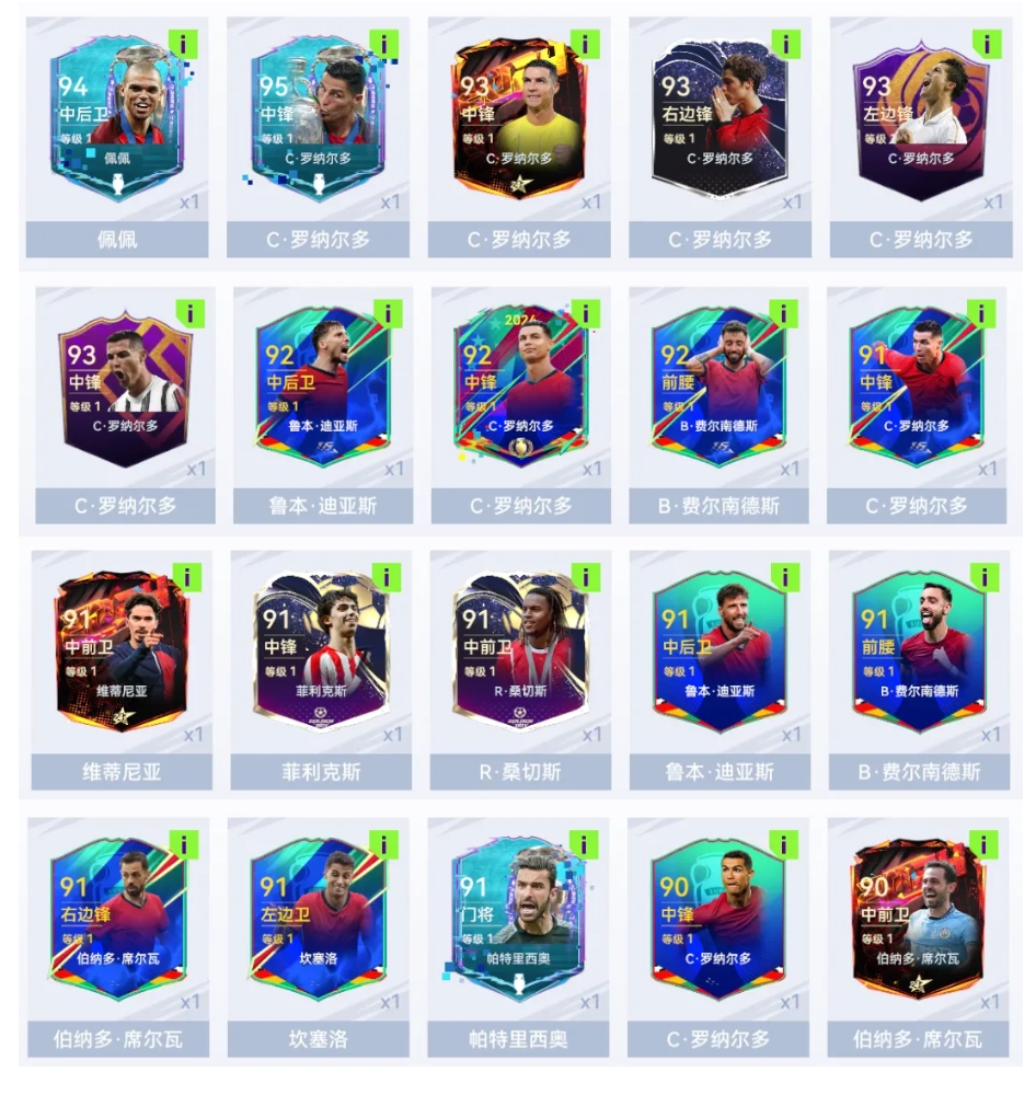 在佩佩葡萄牙UP礼盒中,还有其他闪耀的球员等你收编!C罗鲁本·迪亚斯B·费尔南德斯维蒂尼亚菲利克斯桑切斯帕特里西奥等一众葡萄牙球星带你体验伊比利亚半岛的足球热情!