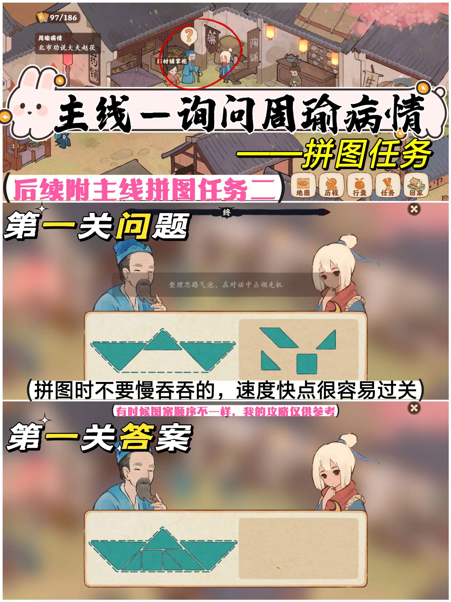 哈喽,大家好,本期我整合了【桃源深处有人家】《南有乔木》剧情任务所有拼图任务通关!主要有3个主线拼图任务、1个支线拼图任务、1个番外拼图任务,分别是:
