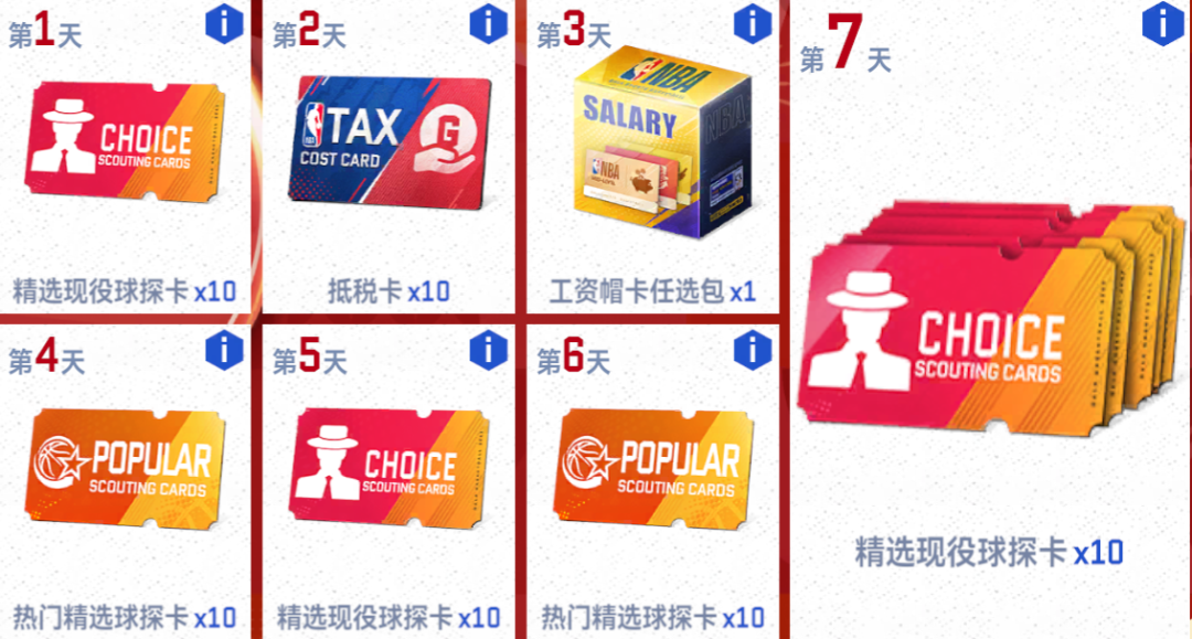 ▸ 第二周:全额中产卡*10、抵税卡*20、热门精选球探卡*15