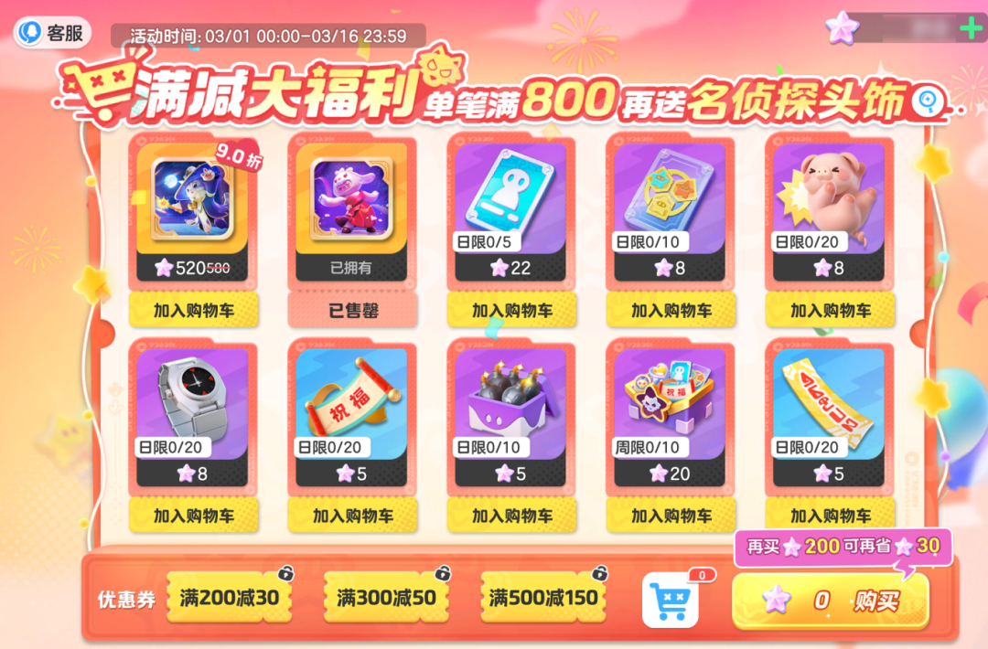 3月1日起,星宝们进入狼人满减活动
