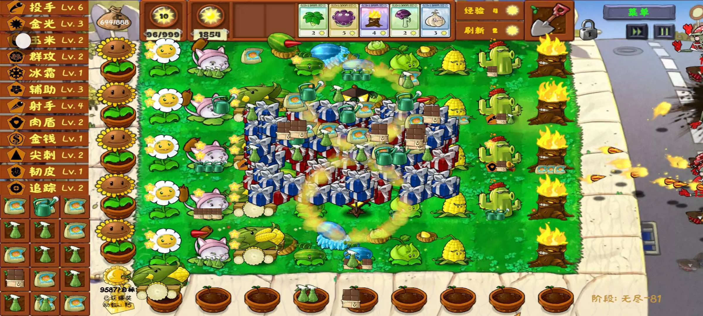 玩了几次,蘑菇流投手流豌豆流无限控制流,都教会我一个道理养金盏花不能养的太多,不然就会这样😰