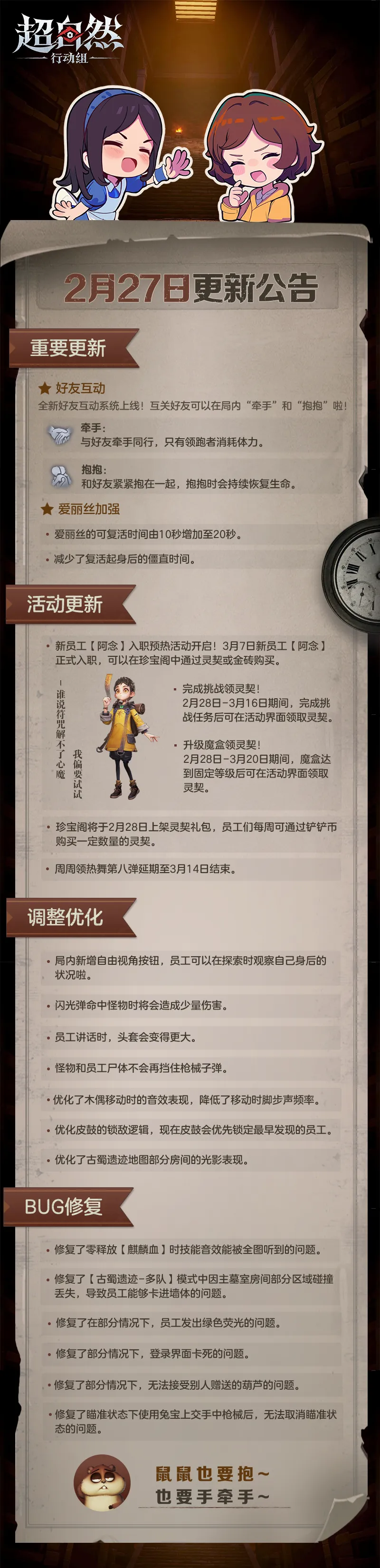 角色平衡方面,这次爱丽丝喜提加强,工友们匹配到她的时候可以更放心地摸金啦!