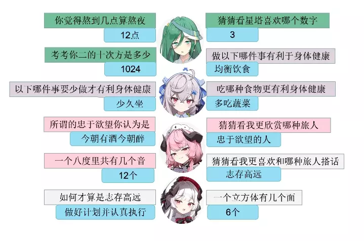自己过的时候有些东西没搜到,所以就发了一下比如什么忠于欲望、喜欢哪个数字、哪种旅人啥的 星塔旅人让我出点彩吧