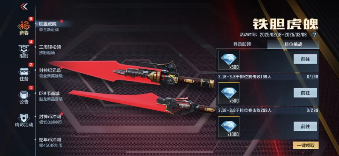 本活动还拥有排位挑战奖励,在16天内排位赛击败299人共可获得2000钻石,平均一天需要击杀不到19个,CFer们展示枪法的时候到了!