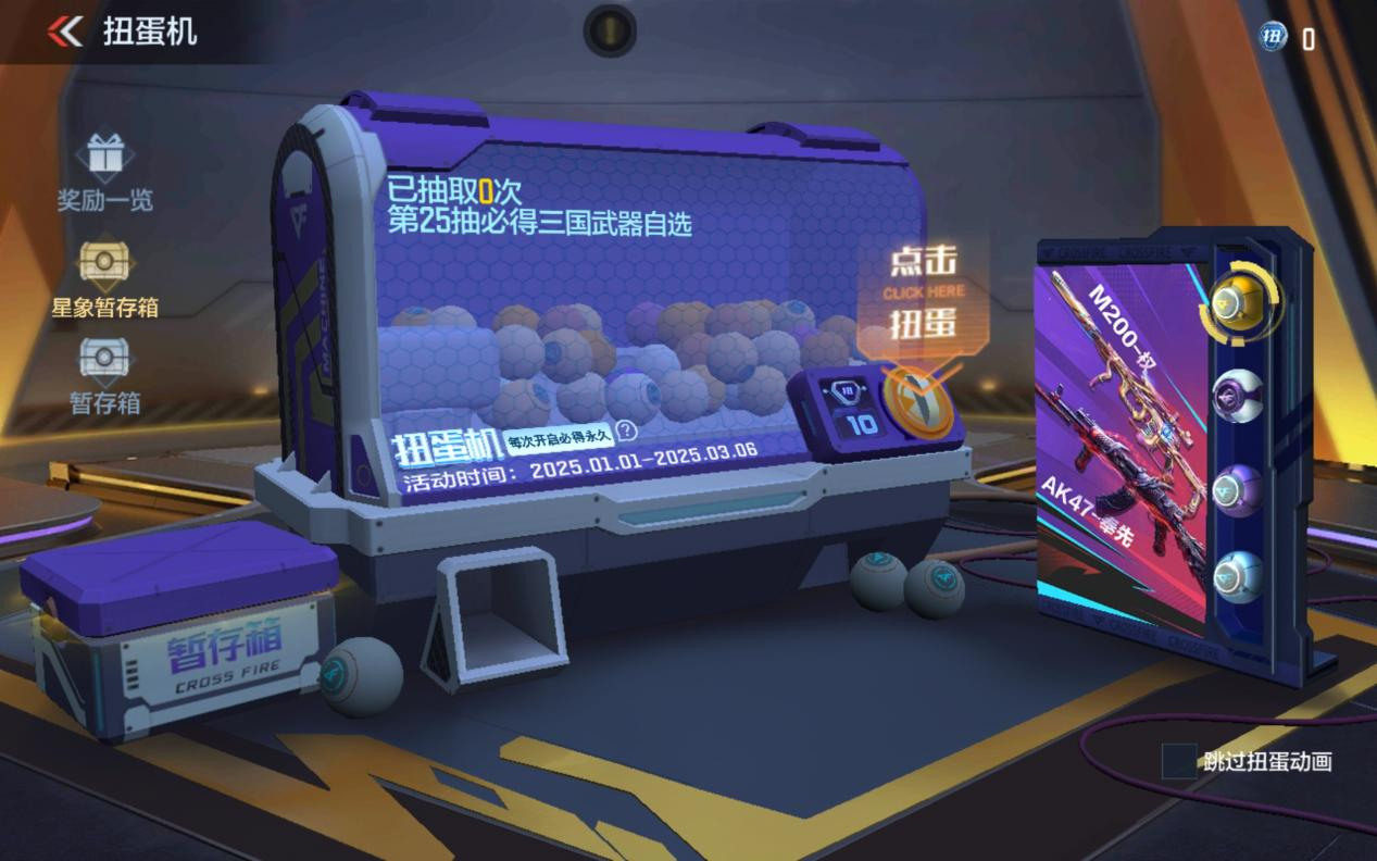 哈喽,各位CFer,大家好!扭蛋机夺宝活动正在如火如荼地进行中呢!这次活动可是亮点多多,不仅迎来了M200权的震撼首发,让那些热爱狙击的你们有了全新的选择;同时,各款三国武器也华丽返场,让经典再次闪耀战场!