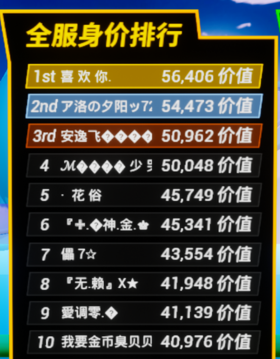 【全服大神】全服大神身价排行榜公示~第五十九期(10月17日)