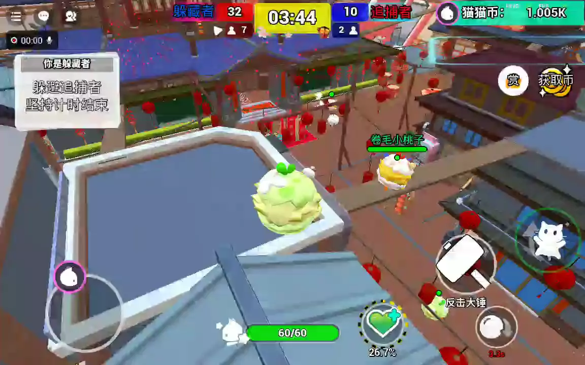 听说玩疯狂躲猫猫可以增加寒假天数哦~ 《疯狂躲猫猫-藕饼版》是一款全球多人在线躲猫猫大作战游戏,你将扮演追捕者或者躲藏者,在紧张的对局中完成你的任务,全程刺激有趣,老少皆宜,叫上你的好朋友一起,来一场刺激欢乐的蛇年狂欢吧! 版本更新: 1.新角色更新-藕饼组合,各自为敌对阵营。 2.大厅出现神秘莲花,碰到会有神奇的效果。 3.削弱蹦床。