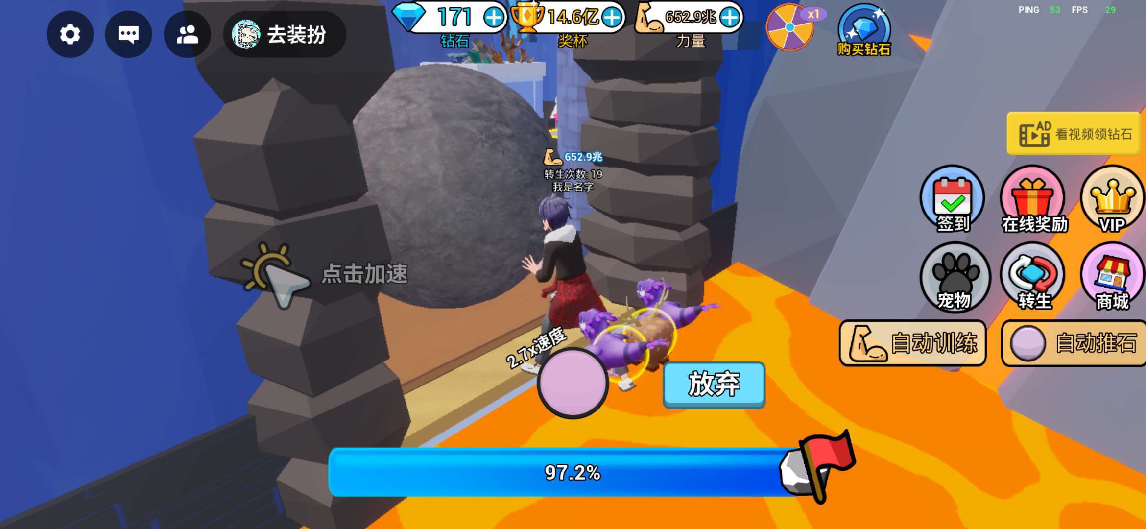 8月10日更新: 增加了全新的地图和更多的宠物及内容! 欢迎来到《西西弗斯滚石成神》,关注我以随时了解游戏更新! 锻炼身体以变得更强壮! 推动石头到终点并解锁下一个有趣的地图! 转生让你的基础力量变得更强大! 孵化奇妙各异的蛋并发现神秘宠物! 探索新的地图和新的神灵! Tags:锻炼,肌肉,神灵,遗物,神话,波塞冬,西西弗斯,模拟器,冒险,宠物