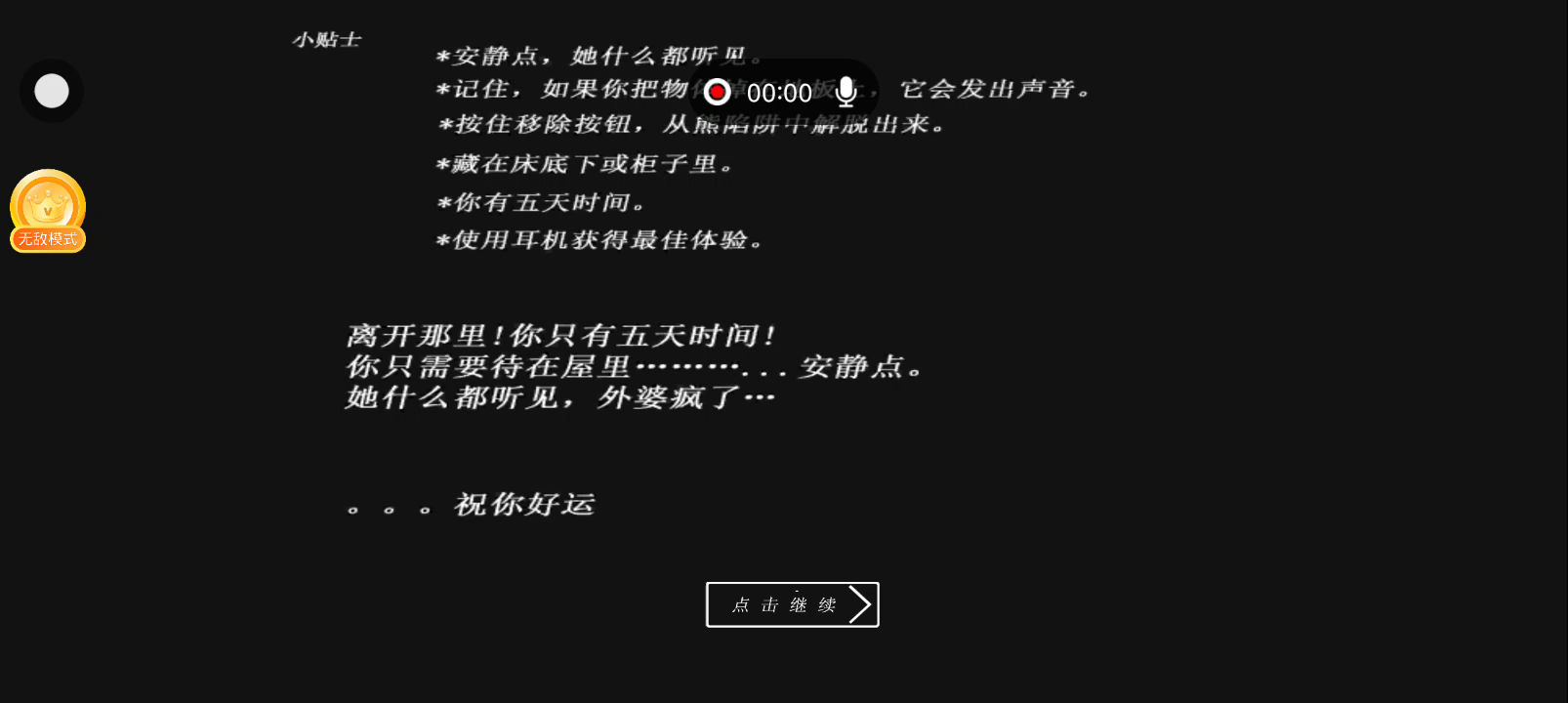 一位恐怖的老奶奶把你锁在她的房子里。 现在,您必须尝试离开她的房子,但要小心而安静。 她会听到一切。,小心地上的陷阱,利用好身边的道具,如果您将某物扔掉在地板上,她会听到并开始追击,您可以藏在衣柜中或床下。你有5天的时间进行逃离,祝好运。