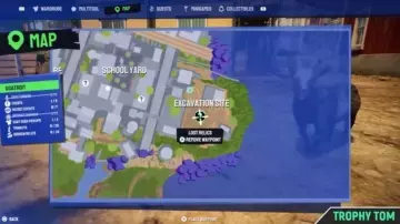 一张用于寻找【一堆垃圾】成就所有饰品位置的截图。废弃岛屿。在切换到佩内洛普之前的牢房处。