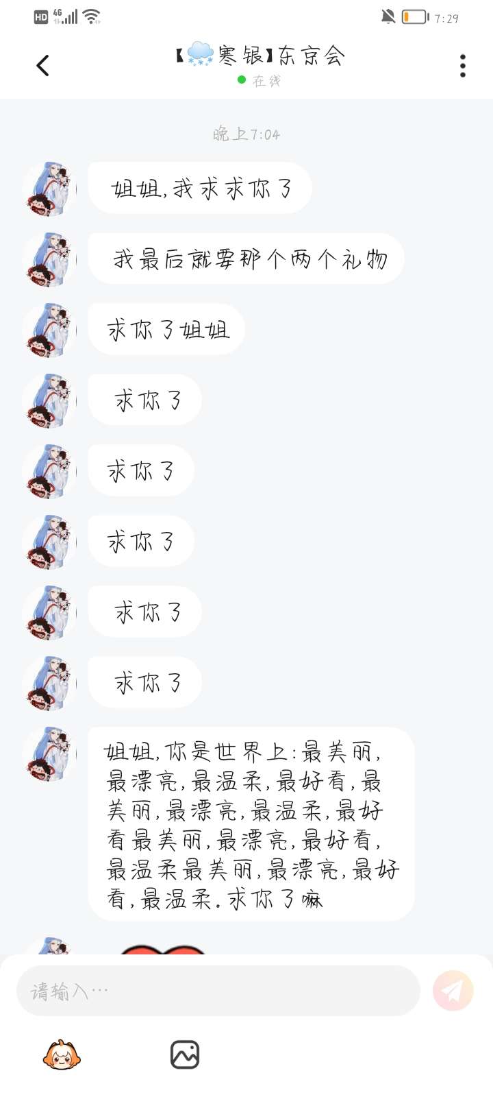 我要的是一个真正的陪我一起玩的,不是打的处关系的名义,来跟我一直要礼物,刚开始说不要礼物~后面也说要送我,结果一个都没送,都是我送的,这种人少来哈,给他送了还不满足,还继续要,来一个删一个哈