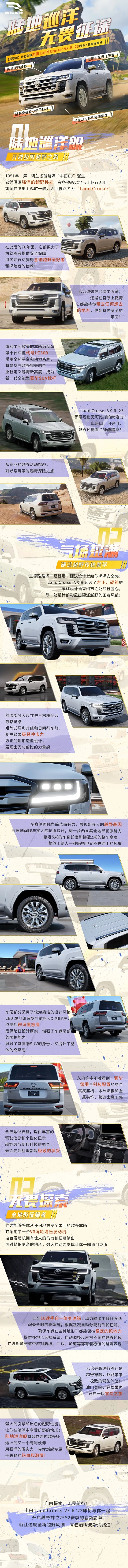 3月6日,丰田 Land Cruiser VX-R '23将作为【越野组】全新传奇车辆与越野排位25S2赛季同步上线,陪伴车手在波斯湾的众多赛道中肆意驰骋!而本次可同样通过合约币、钻石或宝石获取该车,无需进行抽取!