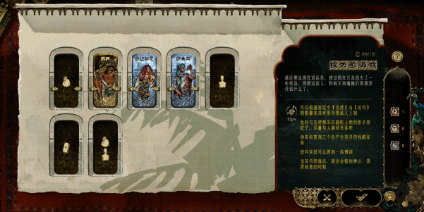每一轮游戏,根据抽到的苏丹卡顺序,玩家都会有完全不同的游戏体验,并且无论胜败,都可以获得积分,强化下一轮游戏的资源,解锁强大,具有特殊功能的盟友、装备,构筑自己的游戏流派。通过对资源与故事机遇的合理运用,游戏存在多种解决问题的流派,也对应了多种不同的结局。