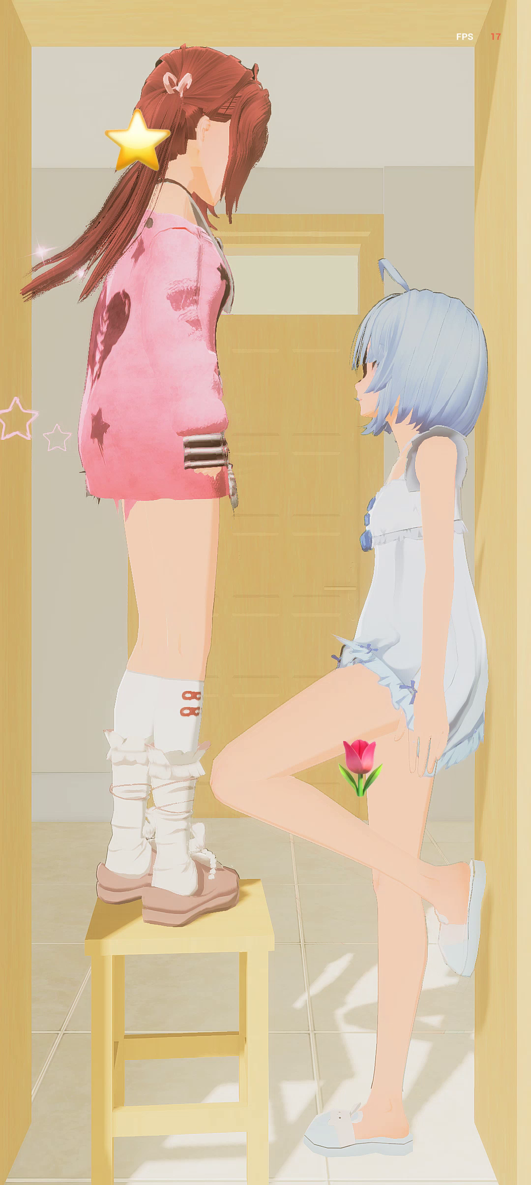 啊啊啊!不是吧?我想换这个衣服,但是我不会换,就只能站着。