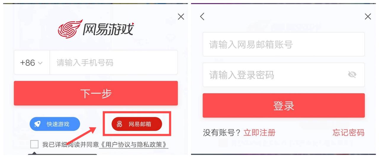 有网易邮箱账号的玩家,点击账号登录界面右下角<网易邮箱>按钮,填写邮箱账号及密码即可完成登录。