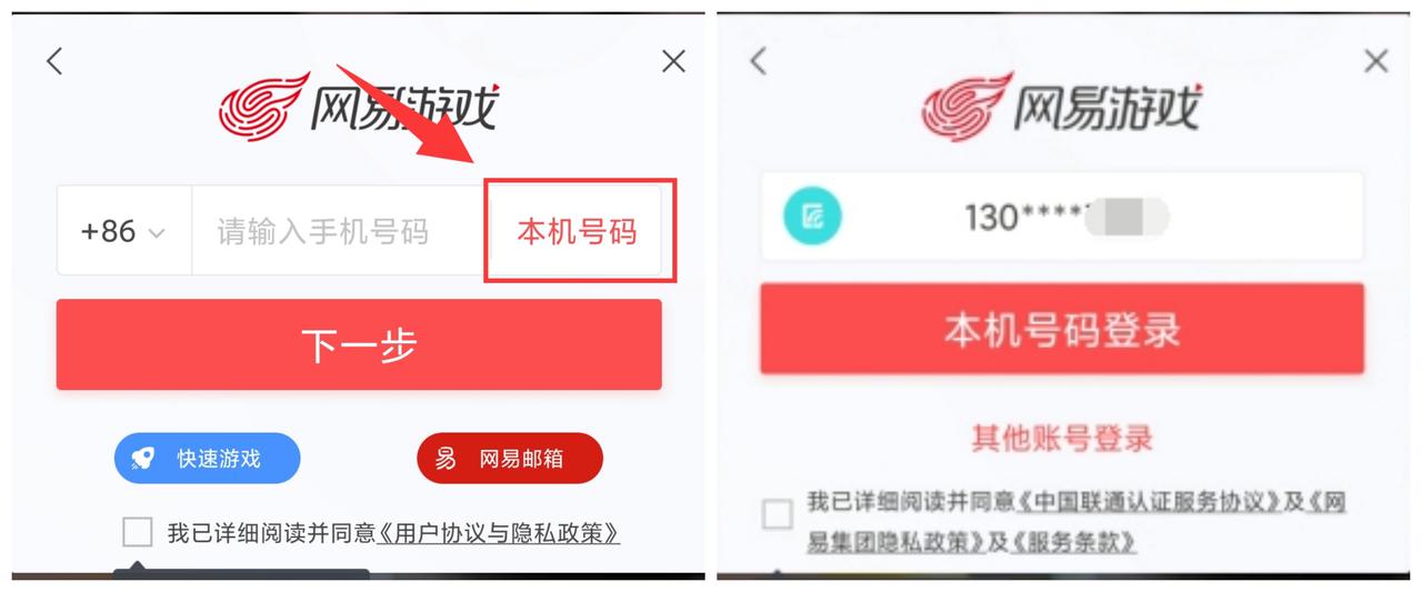 有插入电话卡的玩家,可以点击输入框右侧,直接使用<本机号码>快速登录。