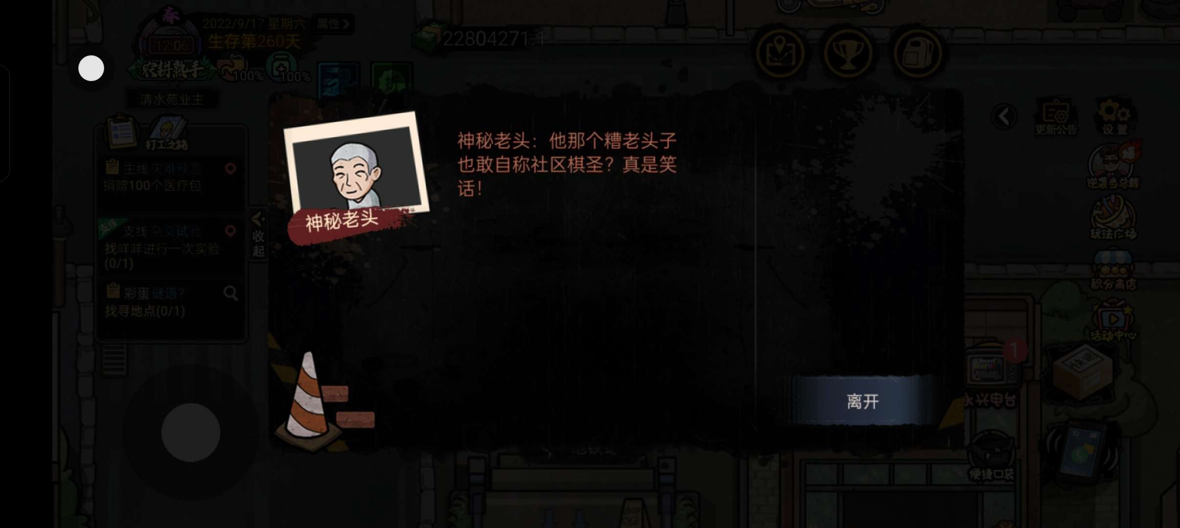 两个问题,1.无法和老头打牌,2.攒够了100个急救包无法提交。