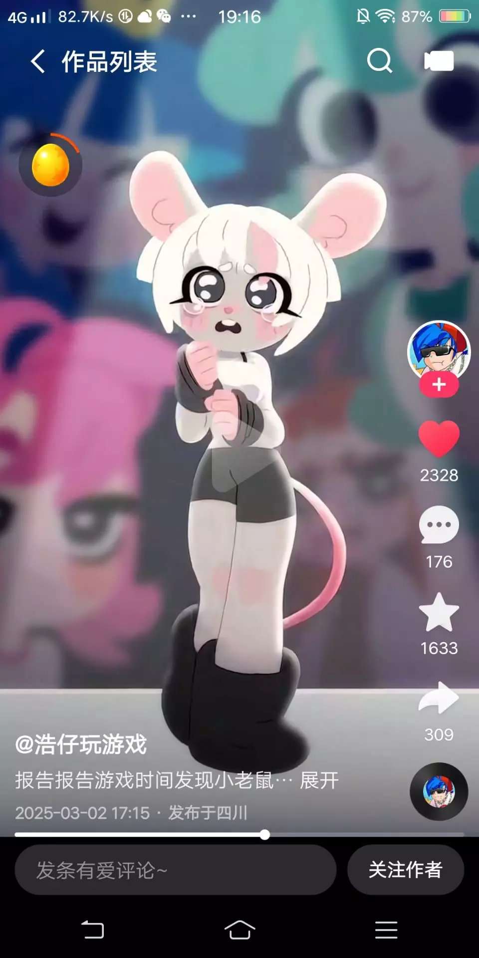 当我刷快手时,突然刷到浩仔发了一个萌鼠的视频