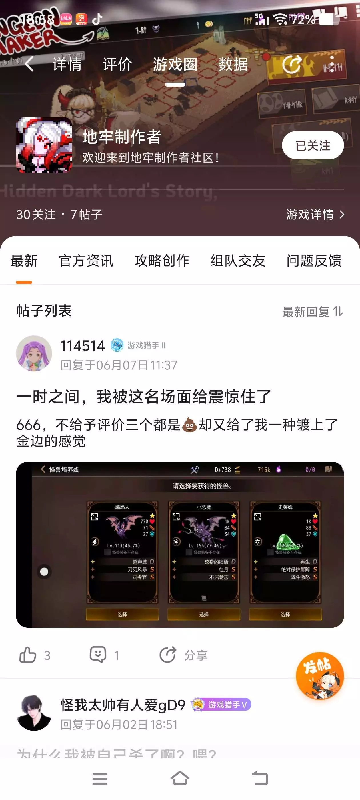 这个游戏的帖子终于活动起来了。 玩儿的人变多了。