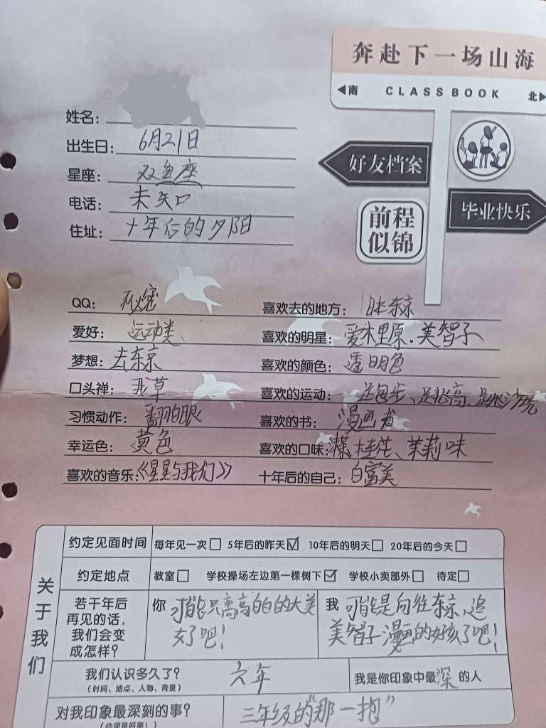 “但愿成真~期待十年后的我!!”
