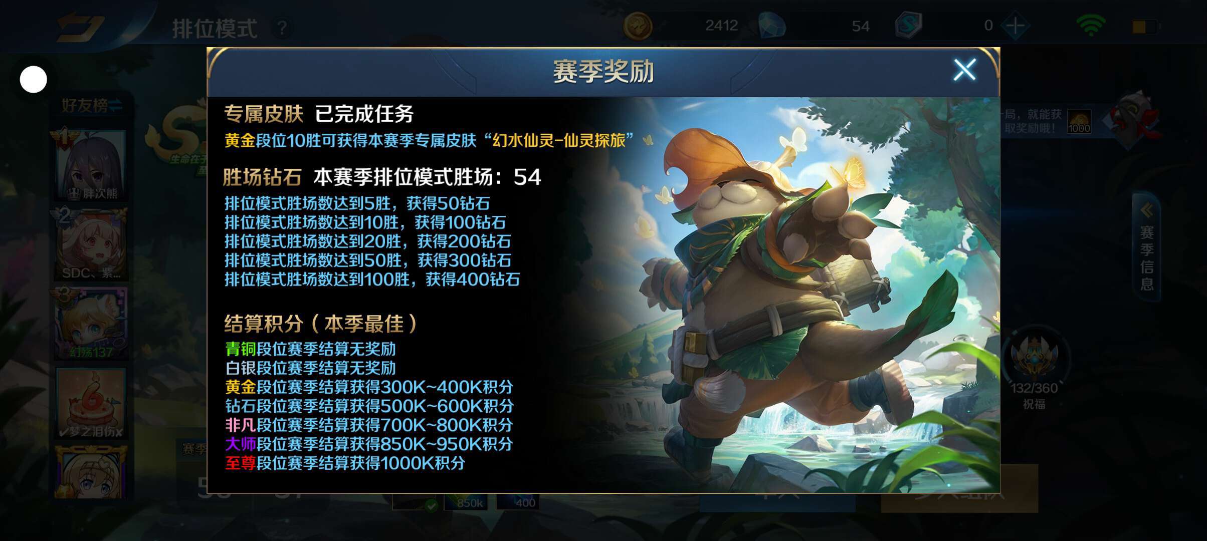 排位我已经升了54场了 你们胜了多少场了?