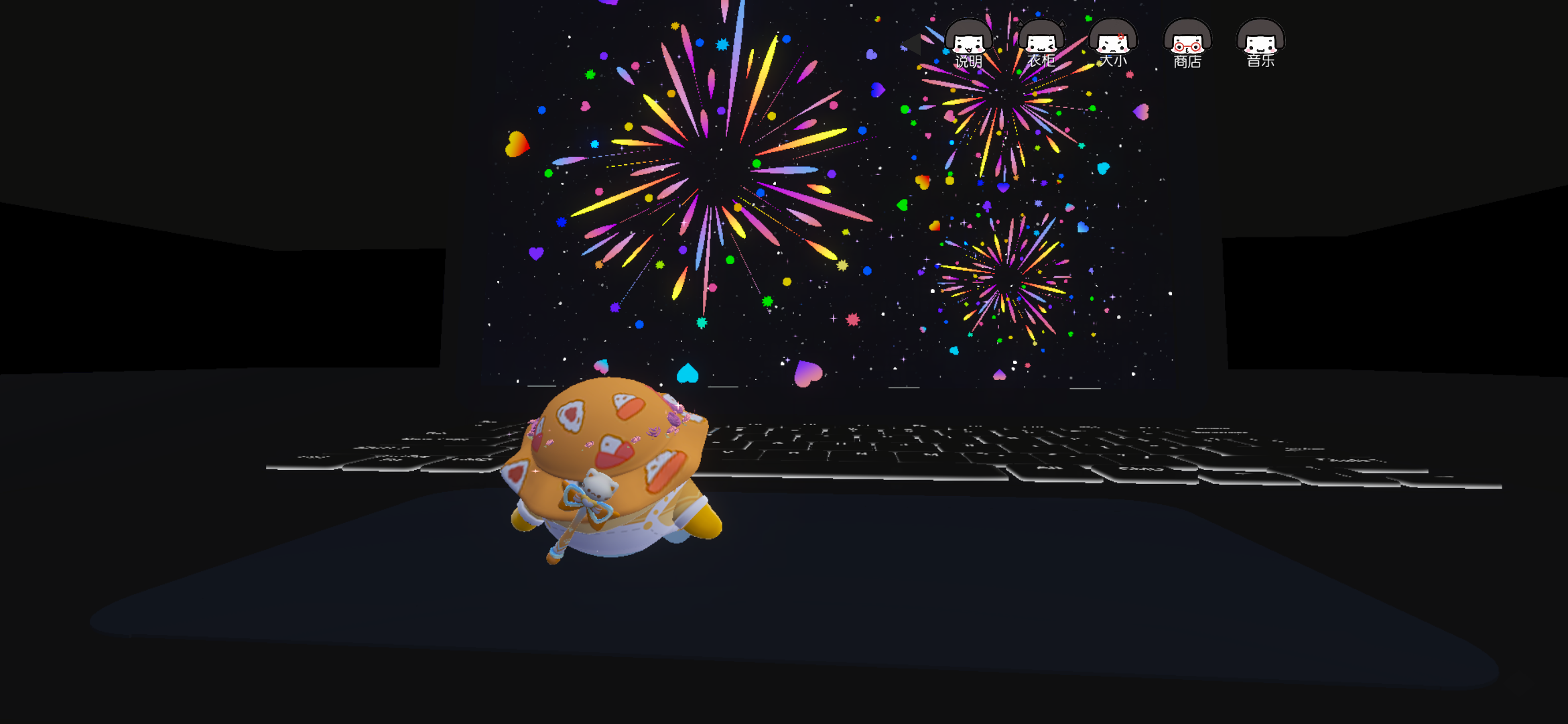 这个景点就是键盘烟花了 我们可以使用两个角度拍照打卡这个景点 第一就是坐在键盘远处的地方,点击动作里面的任何一个就可以开始拍照📸了( ๑ŏ ﹏ ŏ๑ ) 第二就是可以在那个键盘⌨️处有一个往上跳的道具 点击往上跳的那个道具上方,再点击躺下就可以拍另一张超级好看的图片了(*˘︶˘*).。.:*♡ 这个地图的整体都是有很多值得去打卡拍照的氛围感景点(∗❛ั∀❛ั∗)✧*。“烟花一瞬 我们永恒”准备观看下一个景点( ﹡ˆoˆ﹡ )