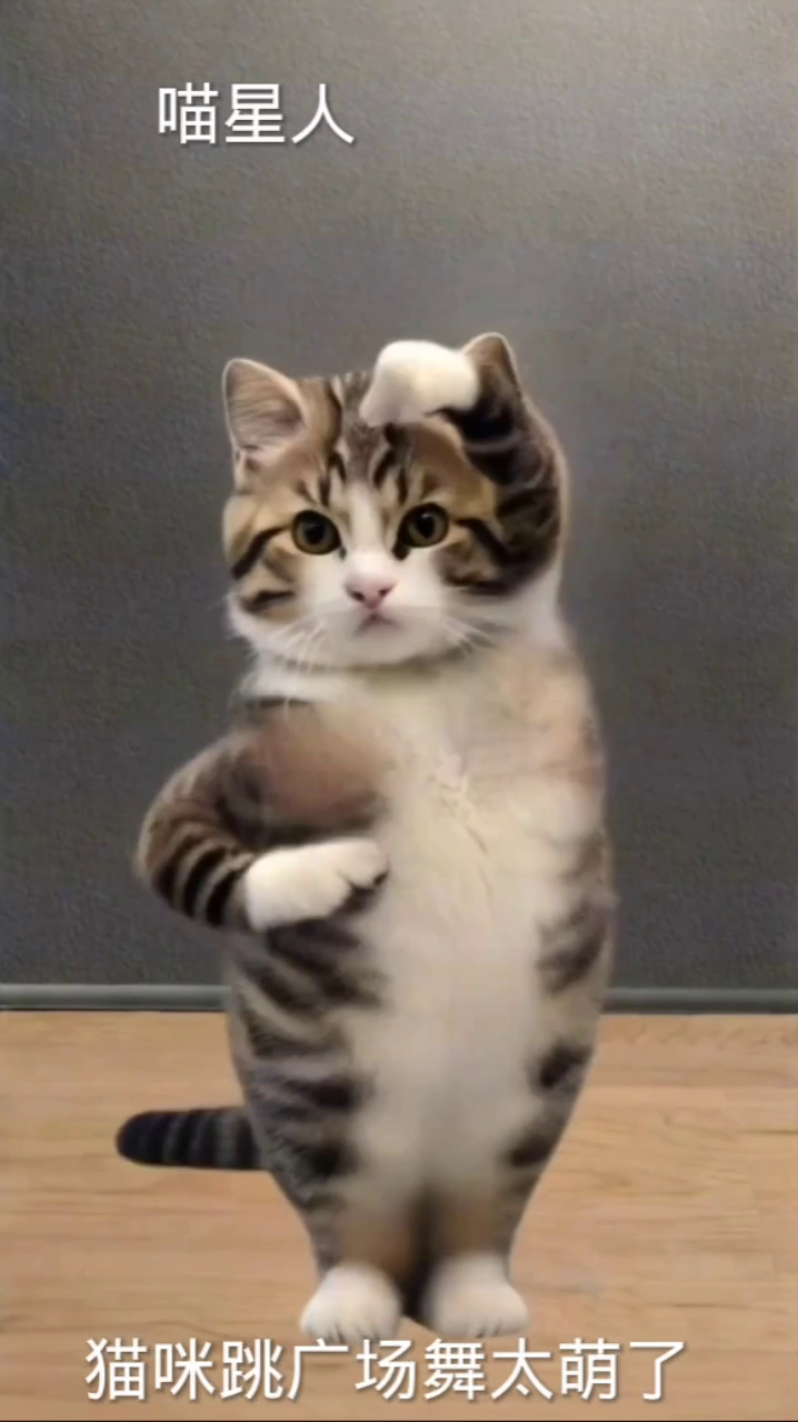 喵咪跳广场舞太萌了