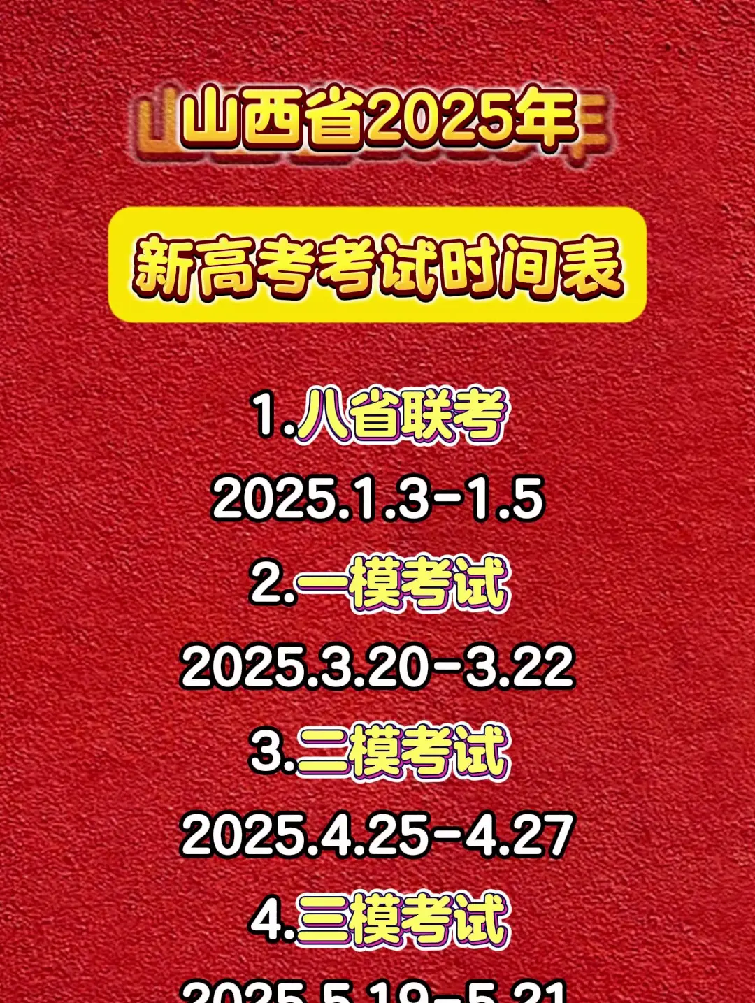 山西省2025年新高考考试时间汇总 #热点 #高考 #新高考 #八省联考 #升学规划