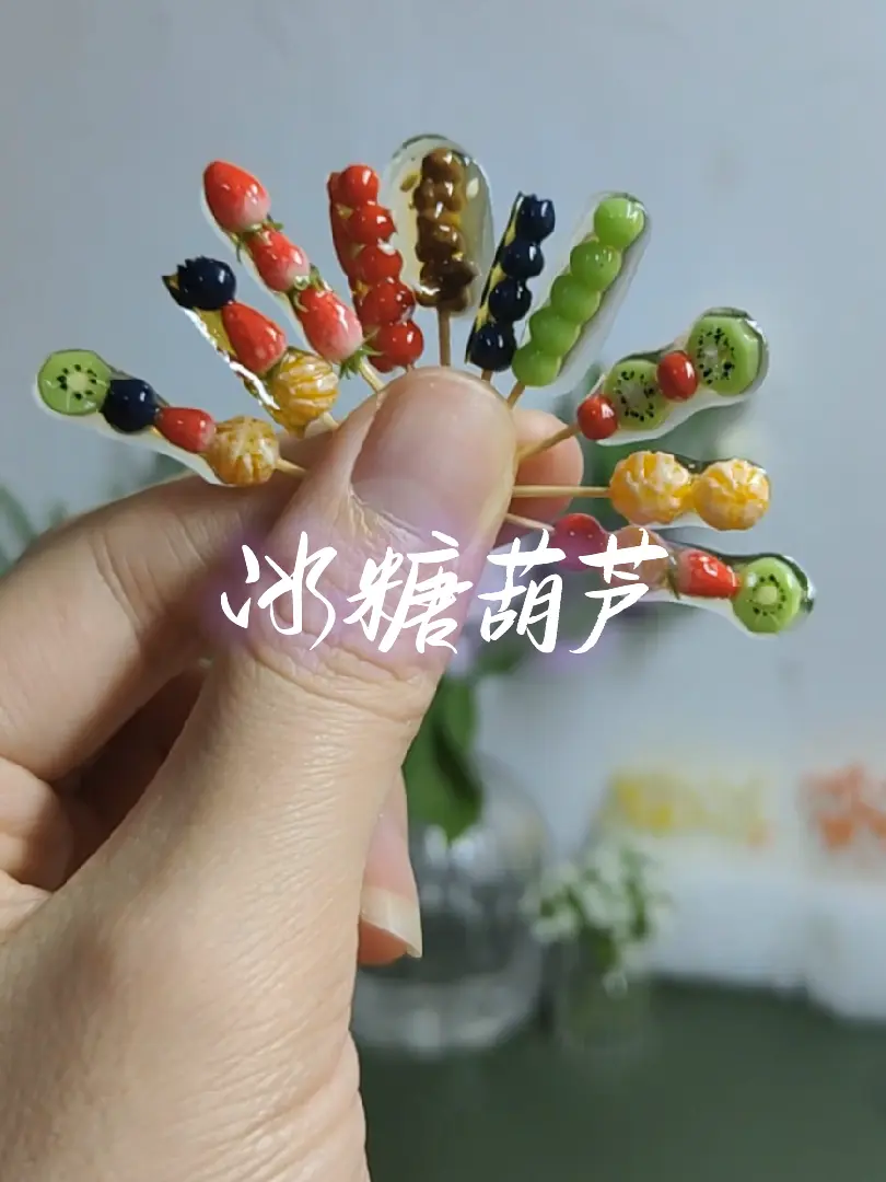 这要是真的,这么迷你的冰糖葫芦,得吃几个才能塞个牙缝#微缩 #迷你食玩 #黏土手工