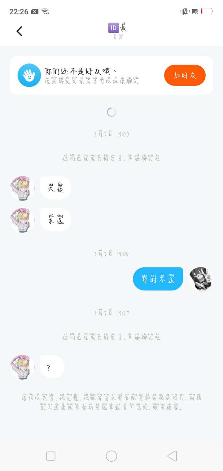 不送你礼你就算你什么意思?有病啊?我只是暂时不送而已。没必要删了吧?而且呢有时我会送,有时不会送啊。你知不知道暂退是什么意思?真鼻涕。我甩锅,我甩什么锅?呵,呵呵,你这个伸手党我不接了。你个臭伸手党。不加了不交友。
