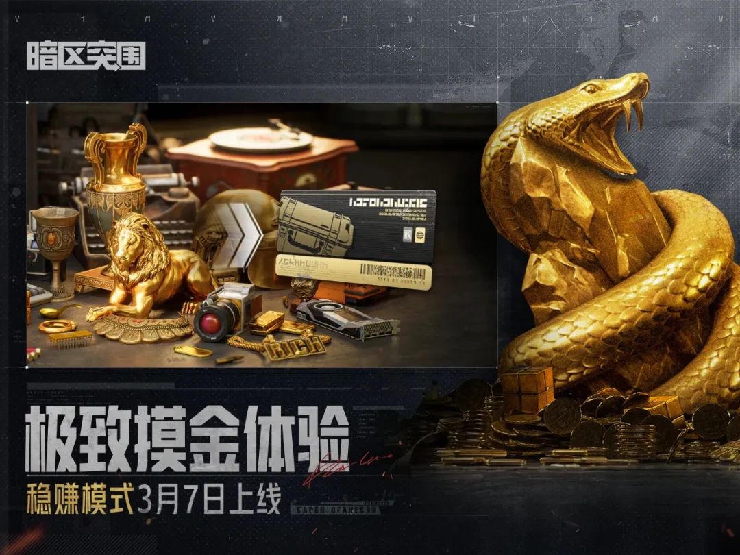 稳赚不赔,畅快摸金,暗区突围稳赚模式3月7日正式上线,为先锋量身打造的极致摸金体验即将开始,无需担心撤出折损,无压力易上手,五套开局任你选,一场前所未有的财富盛宴拉开序幕!