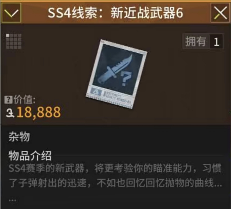 这个线索就不禁燃起了小萤的中二之心了!隐秘高伤害,还能毙敌与无声的近战武器?这难道是SS3赛季隐藏的黑科技,留了一手到SS4吗!