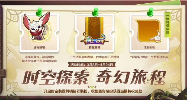 时空探索-奇幻旅程1期奖池开放时间:3月8日(明日)10:00-4月24日23:59