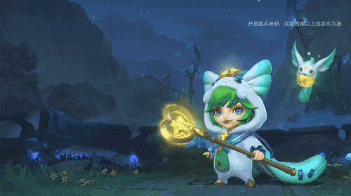 璐璐挥动星星法棒旋转跳跃,会为自身或队友脚底制造出幻彩星河,且伴随绿色的星星花边阵出现。在星星花边阵的加持下,璐璐或队友将会变大,获得额外生命值加成。