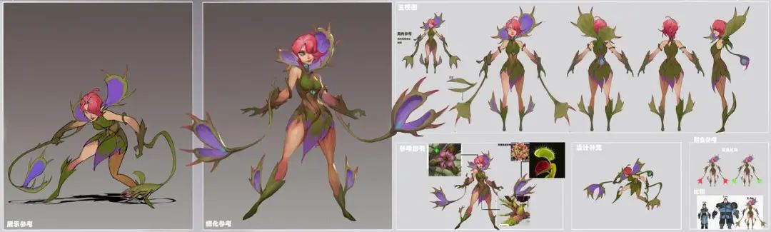 由于剧本二的地图新增了热带雨林中的沼泽地貌,因此,妮娜作为新登场的林妖角色,其身上融入了极具代表性的热带植物——大王花。