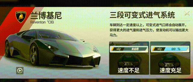此外,兰博基尼 Reventon在三段可变式进气系统加持下,能够在直线行驶时短时间内达到极速!
