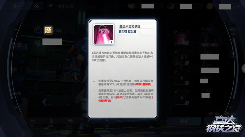 除了机体类型外,机体特性也是决定机体定位的重要因素。在《高达钢铁之诗》中,共有“格斗”“浮游炮”“火力”“突击”“辅助”5种特性。具 有“格斗”特性的机体通常耐久较高,适合在队伍前排为队友分担伤害。