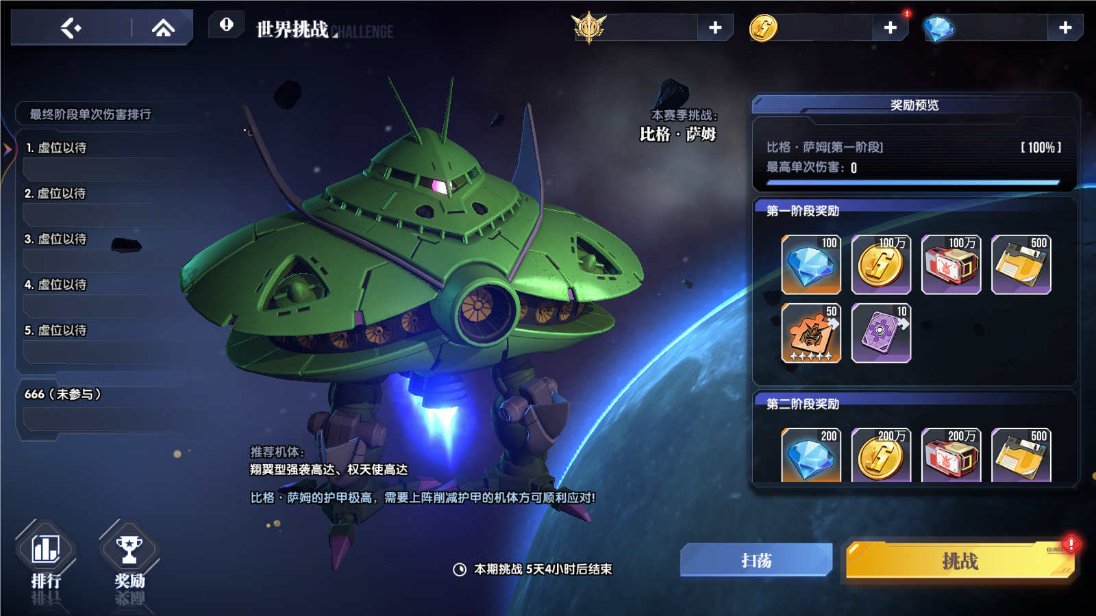 世界挑战每周重置,每周的boss均有不同的攻击模式和弱点,请各位指挥官看清楚提示在进行配队挑战,以便取得更高的伤害排名