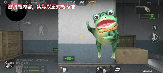 每当玩家进行切枪时,绿色的小蛤蟆从天而降,而玩家伸出双手将其托住,并且小蛤蟆还会发出“呱呱”的叫声,可谓是趣味十足。同时蛤蟆变变器还有专属的展示动作,玩家点击后,蛤蟆会原地转身然后以一种搞笑的姿态立起后腿,之后则向玩家行一个标准的敬礼姿势,然后在完美表演出托马斯回旋,最后回到玩家的托举之中。