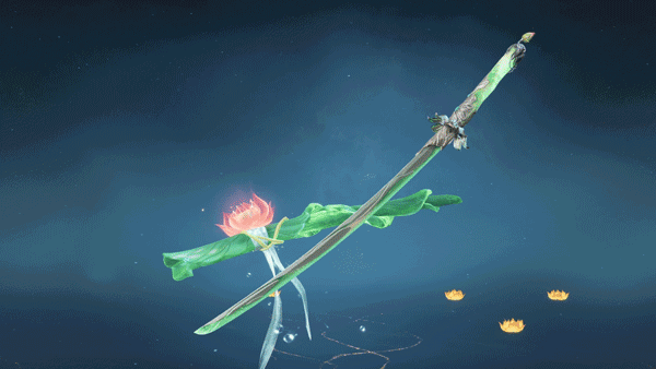 新鲜采摘下的莲与叶包裹而成的刀鞘,仍向外吐着水露与泡泡,颇有几分闲趣。