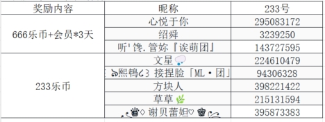 最佳幸运奖:随机抽取5名冒险者送出233乐币
