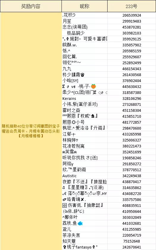 上榜均可获得精选资源位,推送流量补助、233乐园会员月卡、高级班推荐卡