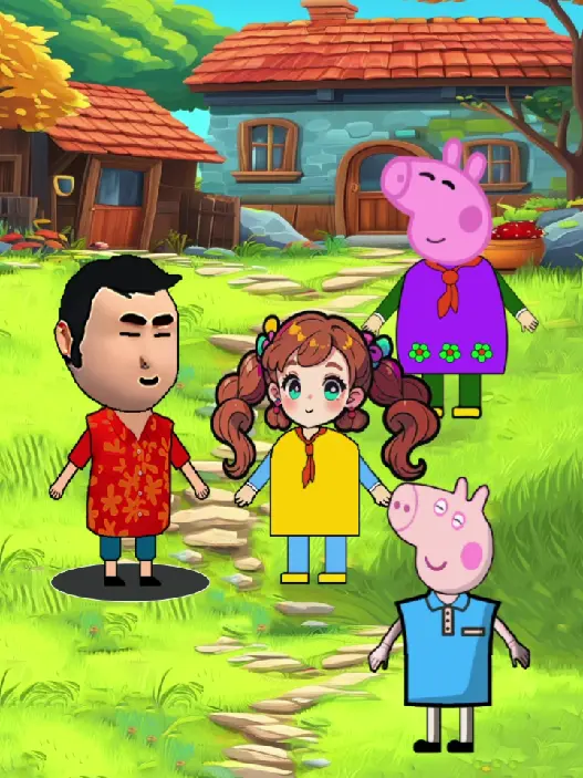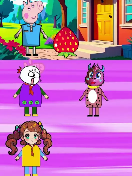 这是一组小猪佩奇相关的趣味儿童动画创作图,图中有小猪佩奇、猪爸爸以及原创卡通角色,还有怪兽形象,呈现出充满童趣的互动场景,适合儿童观看。