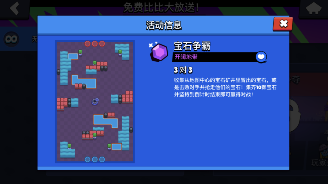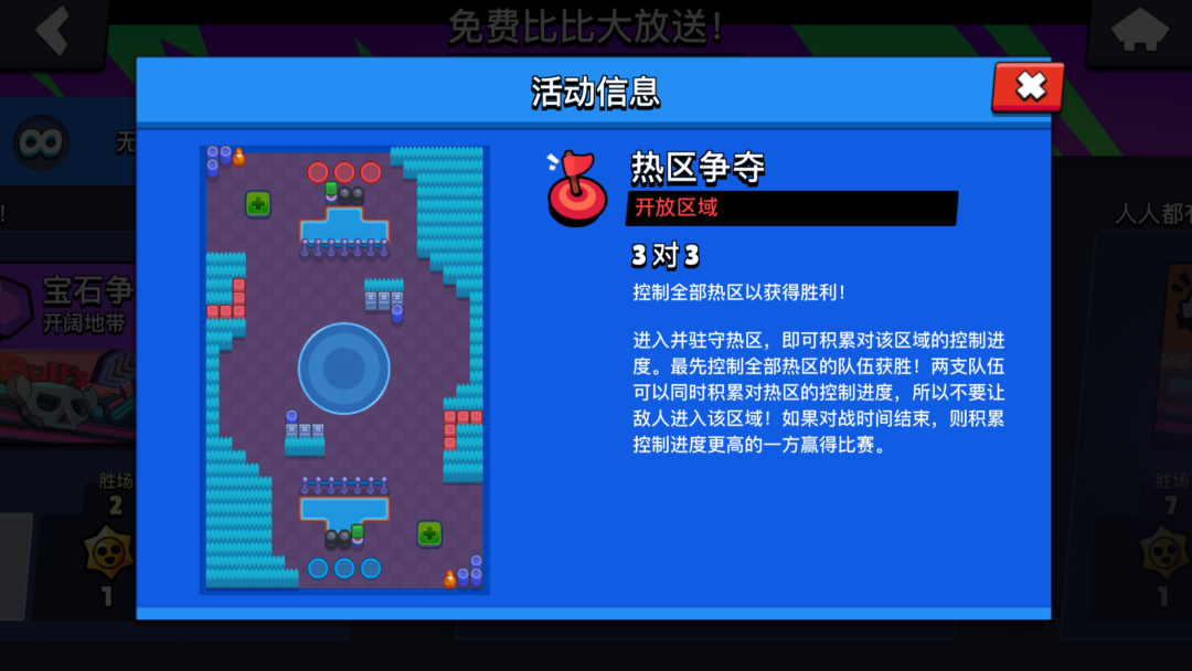 活动时间从 3月13日一3月24日,完成指定模式挑战,一共三种,分别是宝石争霸、热区争夺和乱斗淘汰赛。