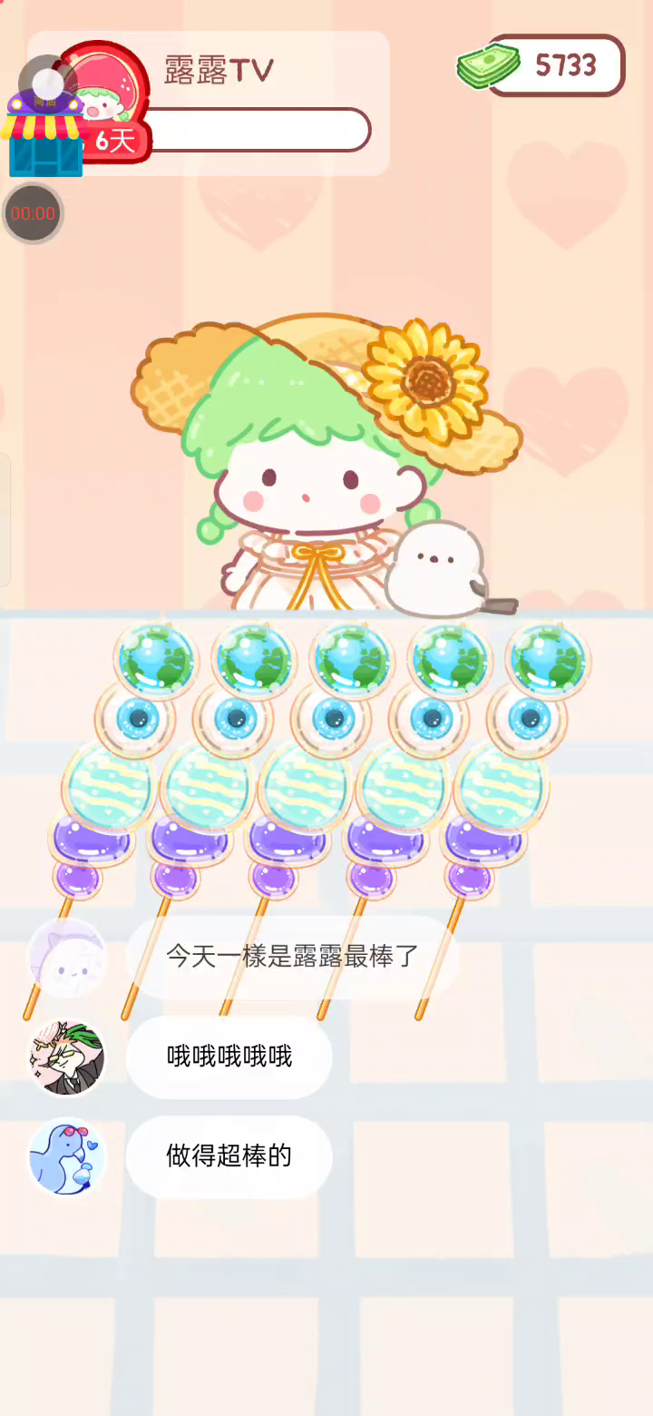更新新的装饰和圣诞糖葫芦!! 「你进行草莓糖葫芦吃播的话,我就赞助100元。」 「脆口的声音太迷人了(°θ°)」 由于客人都被最近新开的许多糖葫芦店家抢走,曾经号称糖葫芦达人的父母因此卧病在床。 继承父母店面的主角露露开始糖葫芦吃播来宣传店面。 直到成为真正的糖葫芦达人那一天! 「今天我也要开始糖葫芦直播罗!( •o• )」 [串材料] 只有新鲜的水果的话,很难以一名吃播实况主存活下来。还要有松饼、地球软糖、青阳辣椒!利用奇特的材料制作糖葫芦吧。 [裹糖衣] 将材料串满竹签的话,就放进锅子搅动吧。唯有利用达人的秘法,才能裹出又薄又脆的糖衣。 [即时吃播] 咔哒咔哒!今天的吃播也大成功。热烈的聊天内容看起来反应也不错。看来得利用完成观众任务得到的赞助金来买新材料了! 来,准备好了吧?现在就马上挑战成为糖葫芦达人吧!