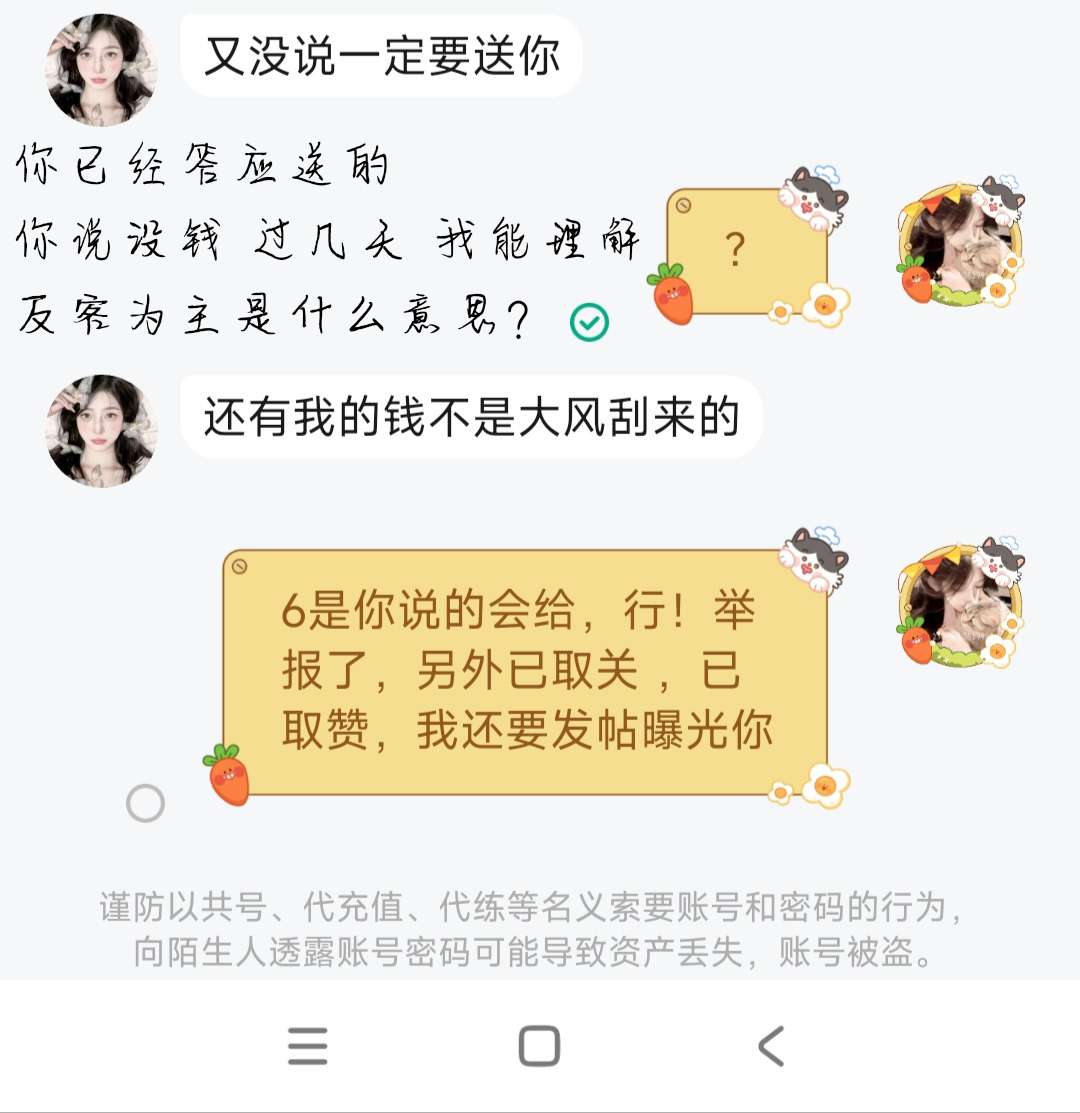 你说没钱了 过段时间再送 我可以理解