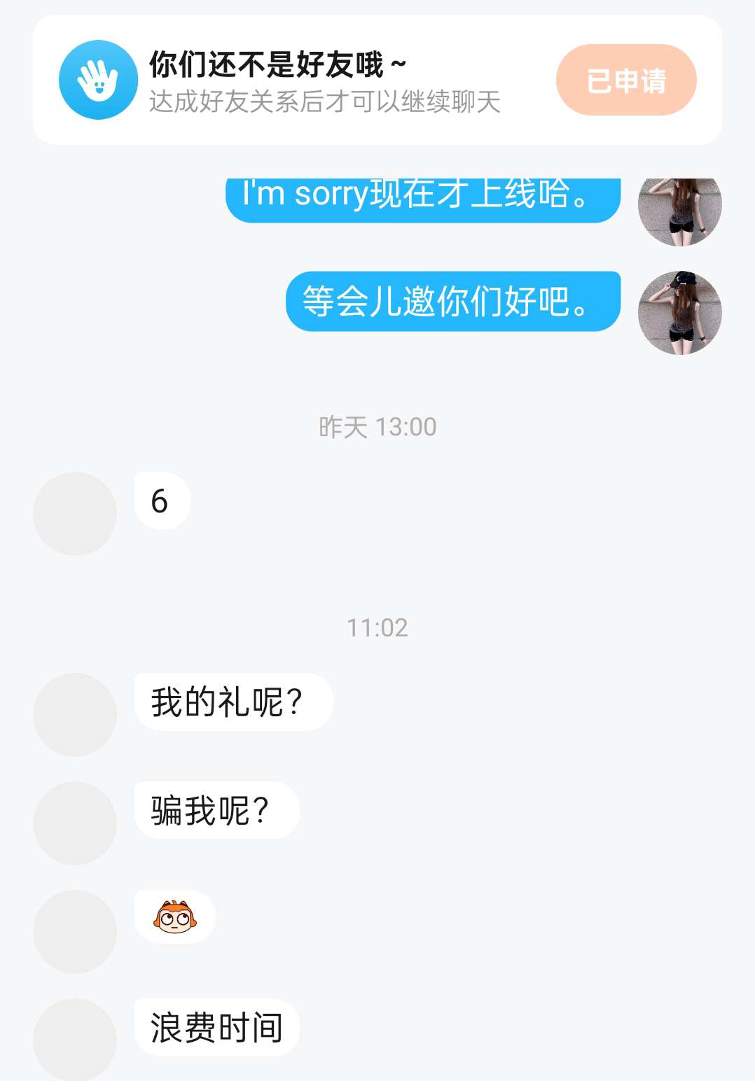 为什么要骗我?说话呀