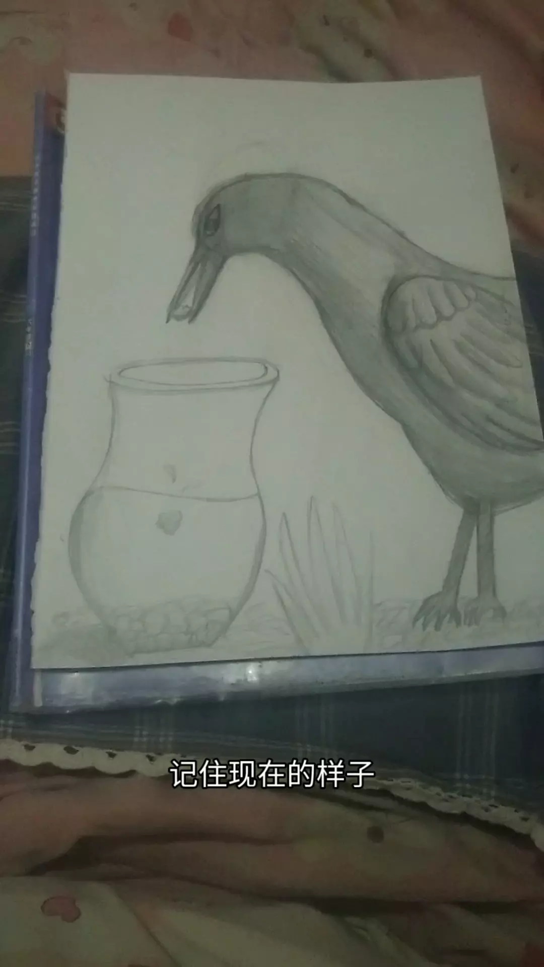 给我妹画的乌鸦喝水,可能有点丑但涂了色更丑🙃