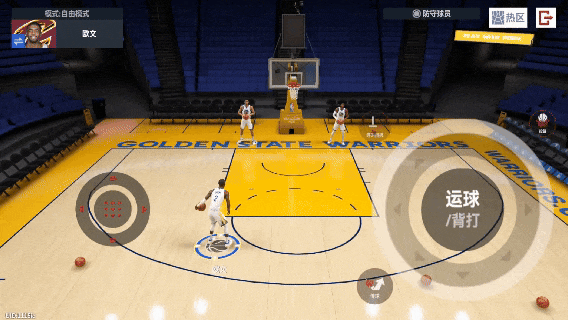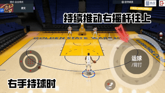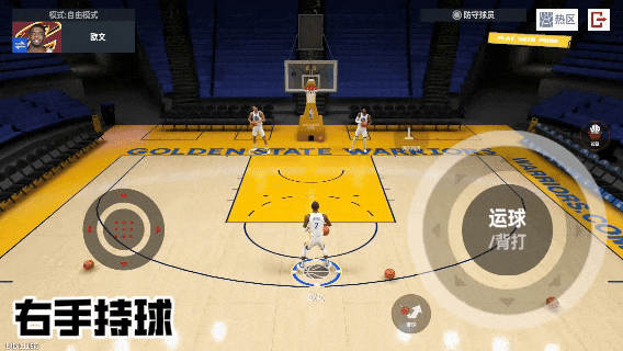 原地运球或是移动运球时,往持球手的另一侧侧推动右摇杆(例:左手持球时向右推动右摇杆),可打断后衔接多个横拉/后撤/移动背运。