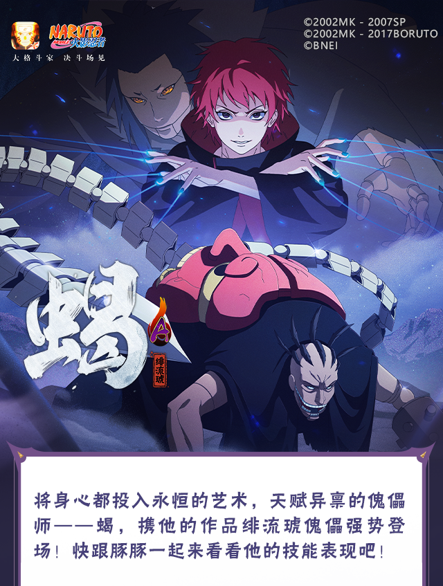绯流琥蝎可自由选择操纵三代目风影傀儡或绯流琥傀儡进行战斗,点击技能键中的“三”、“绯”按键,绯流琥蝎便会后撤步并切换操纵的傀儡,操纵不同傀儡时普攻、技能、奥义均会变化,两套技能共用冷却。